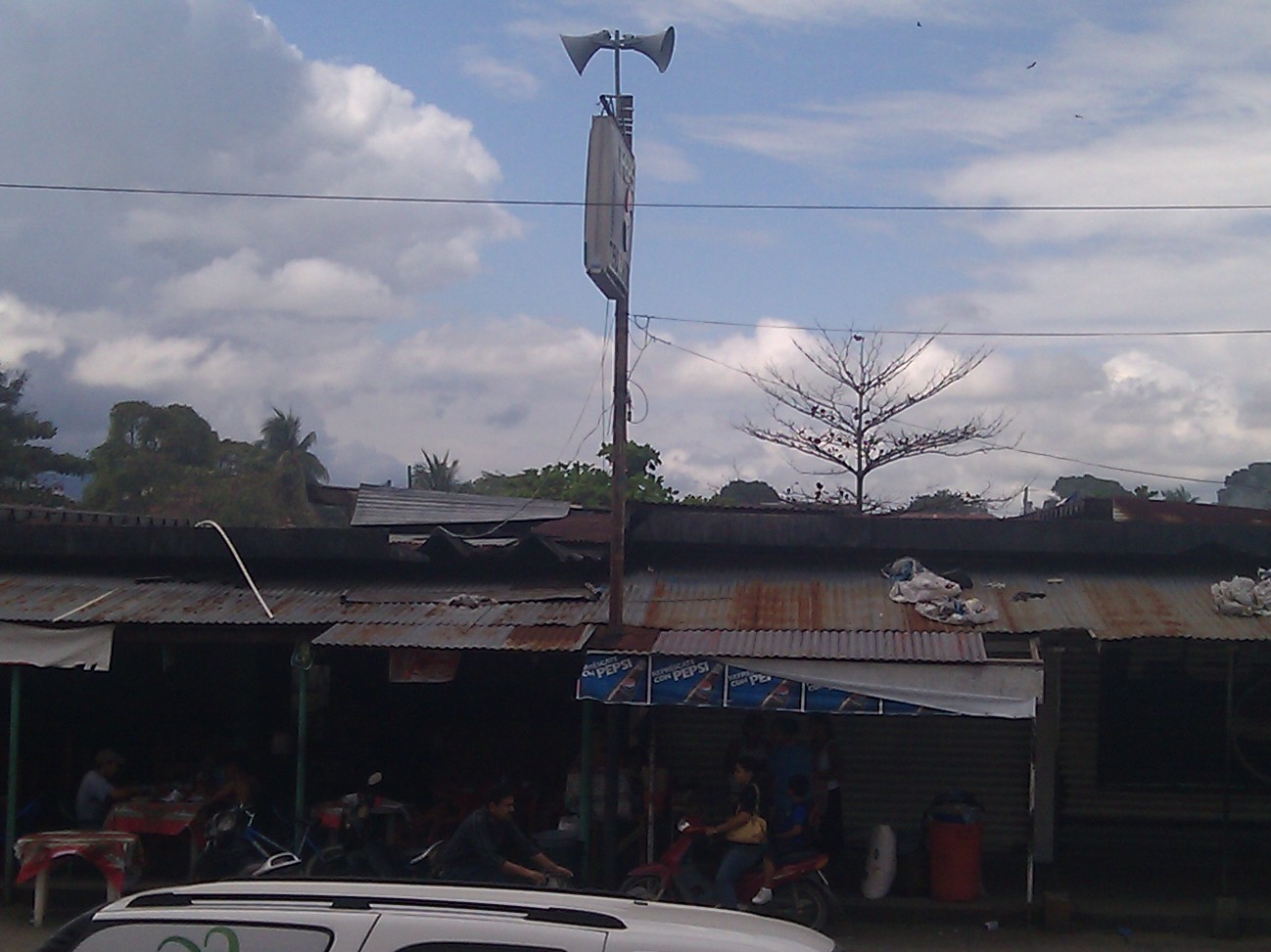 En el mercado de la 14 calle tenemos altavoces en un poste en la zona central del marcado y cubre el área en la calle durante el baratio.